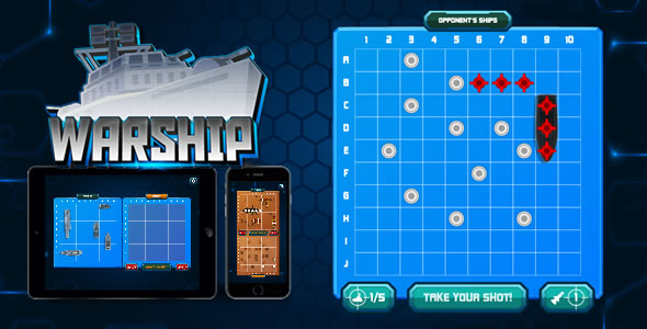 Warship is a HTML5 game where 2 player fires in the adverse grid and tries to search and destroy all of opponents ship for the win, find the most efficient way to battle by setup your board settings including size, total ships and game mode, with advanced game mode you could firing multiple shots instead of one to beat the game.
