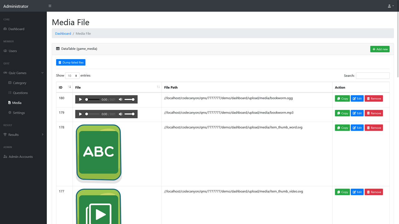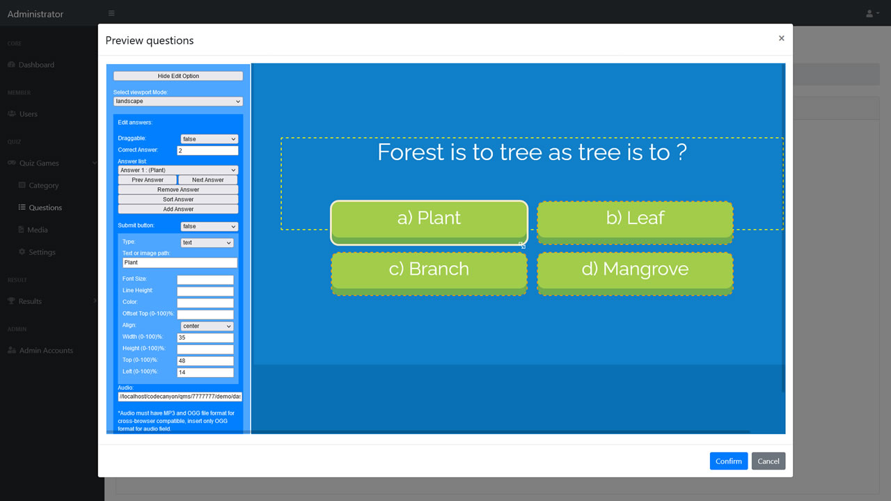 Upload media files like Image, Audio and Video for questions assets via admin.