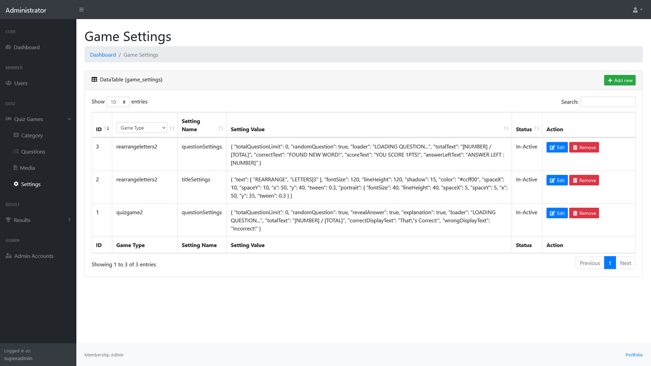 HTML5 Trivia Games list with the latest version that are compatibility with this add-on
