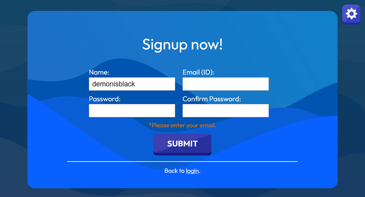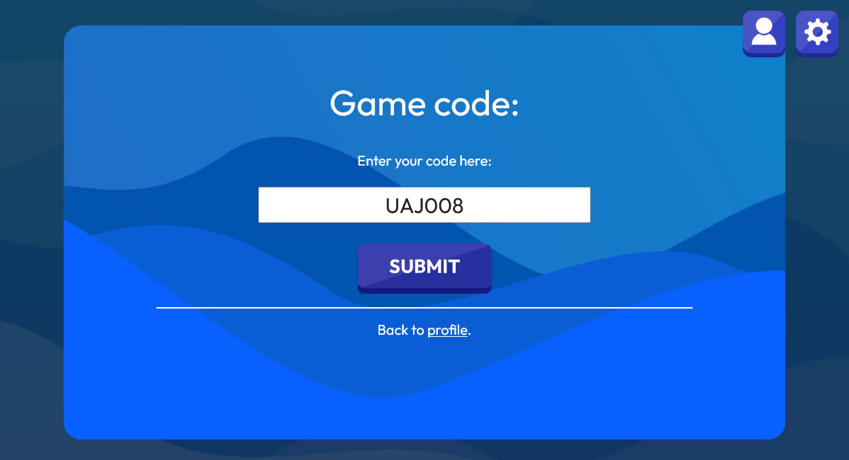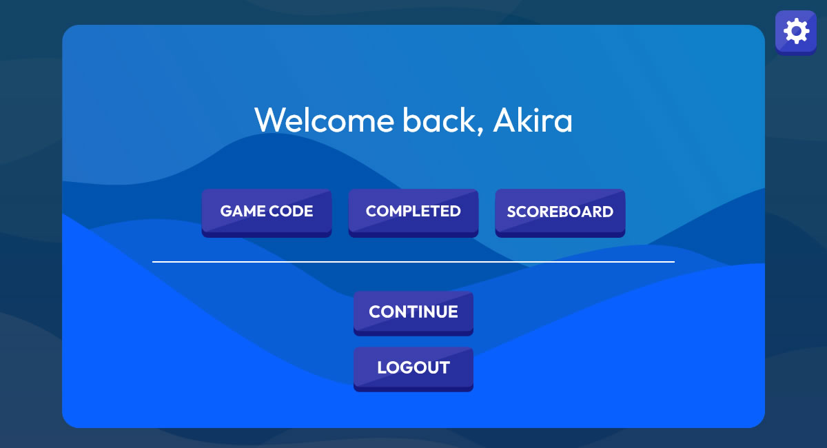 When a game begins, users are prompted to register or log in. Once logged in, they can view completed quizzes, resume unfinished ones, or enter a code to start a private quiz.